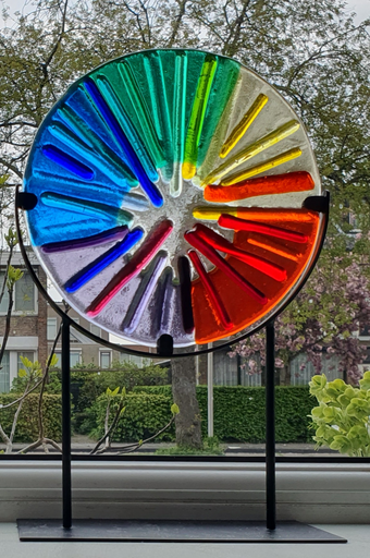 Van 2004 tot 2008 heb ik mozaieken gemaakt. Daarna werd glas fusen mijn grote passie. Ik maak sieraden (dichroic buulseye glas), objecten, raamhangers en plantenprikkers.